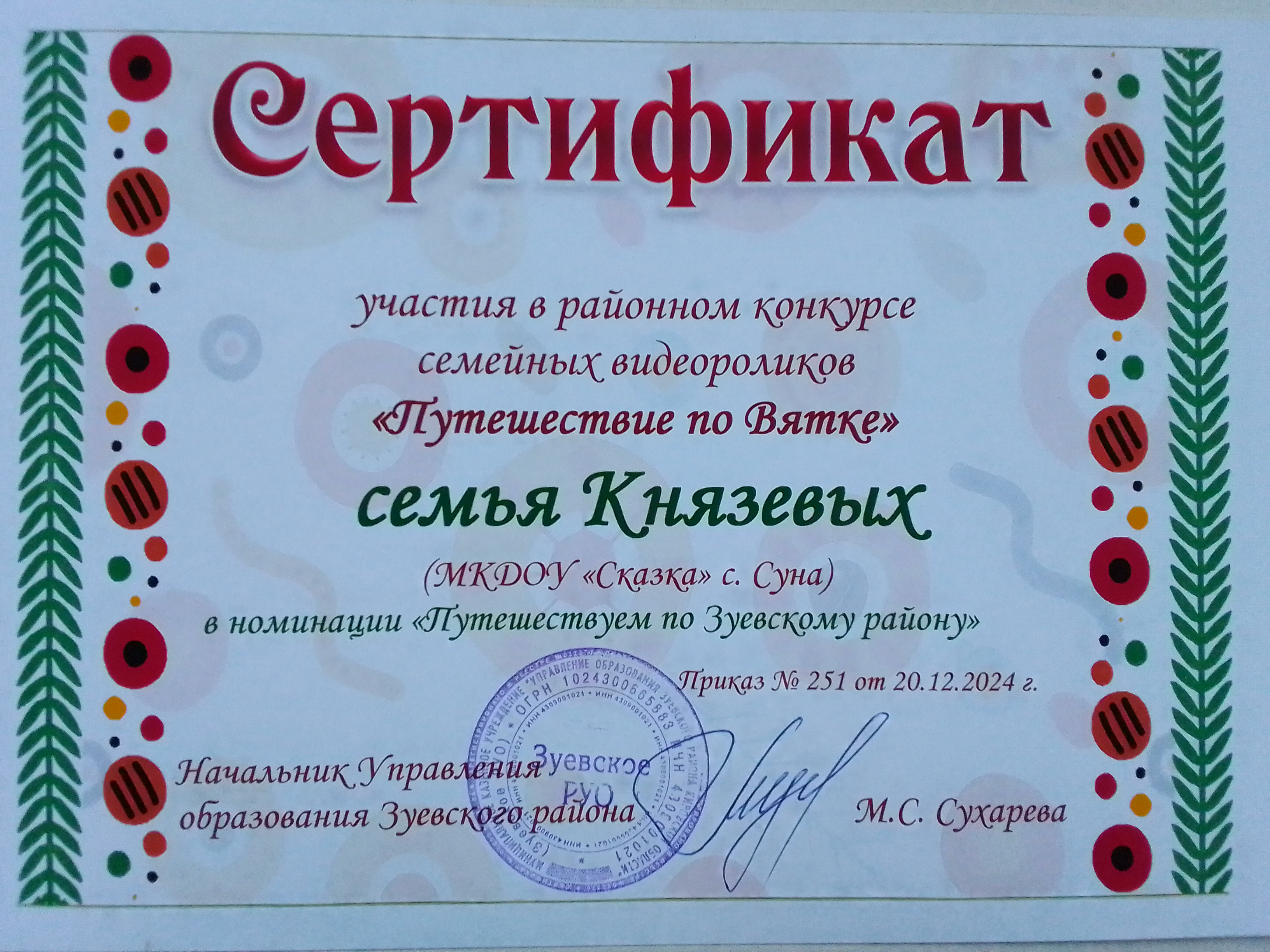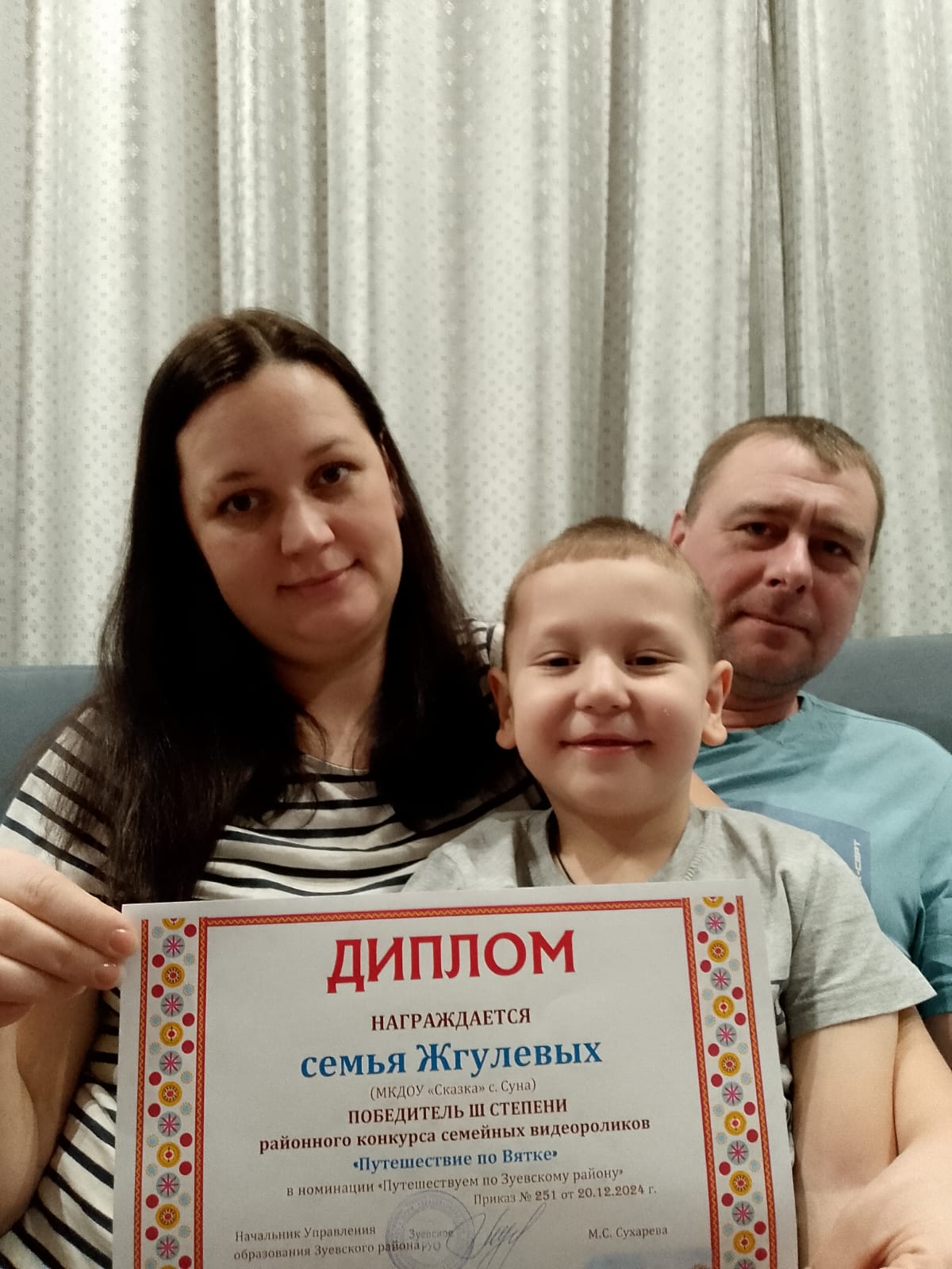 Две семьи из старшей группы приняли участие в районном конкурсе семейных видеороликов "Путешествие по Вятке" в номинации "Путешествуем по Зуевскому району". Очень приятно наблюдать, когда родители активно принимают участие в экологическом воспитании детей, знакомят их поближе с природой.