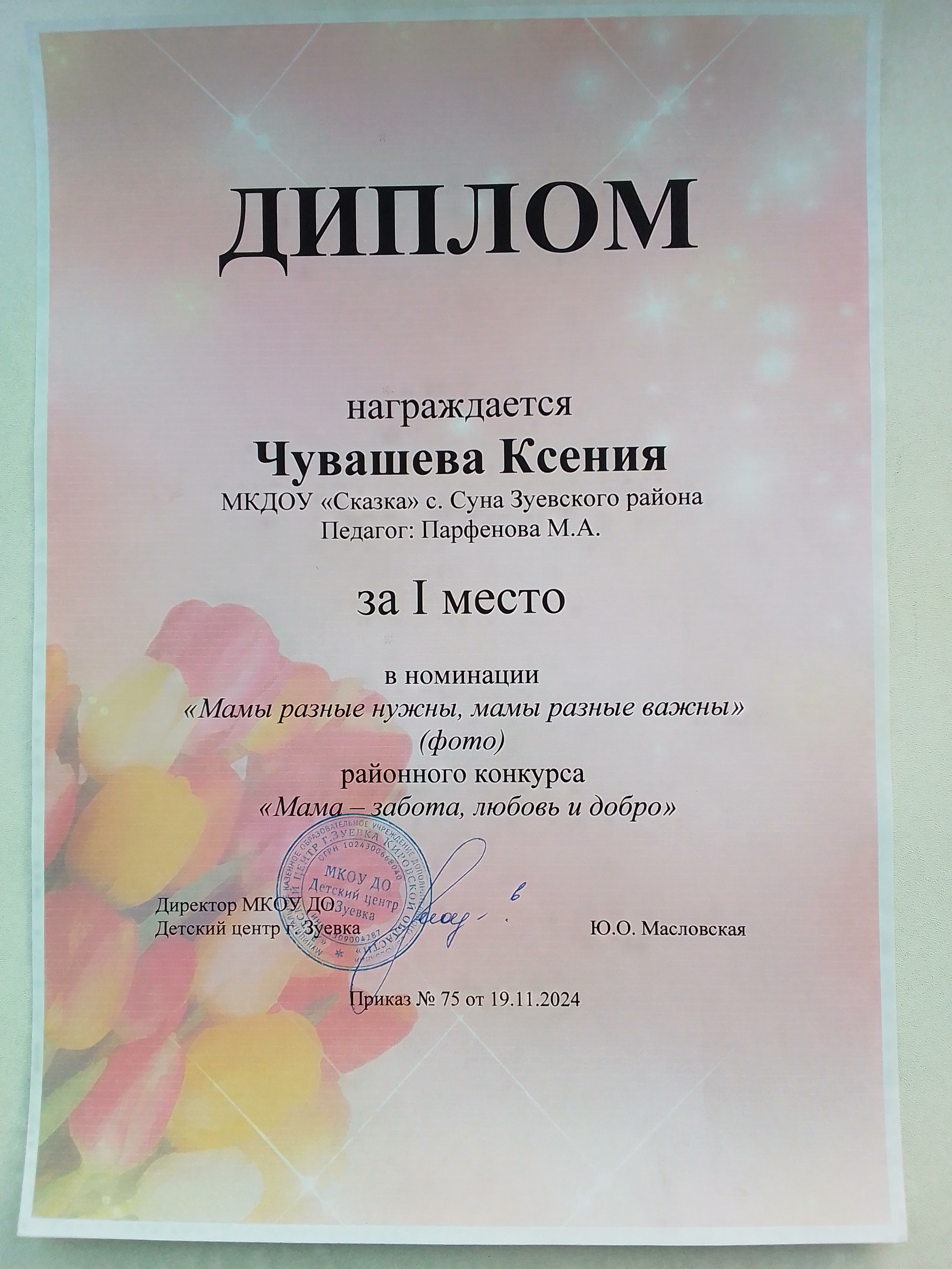 "Для мамочки любимой-для мамочки моей"