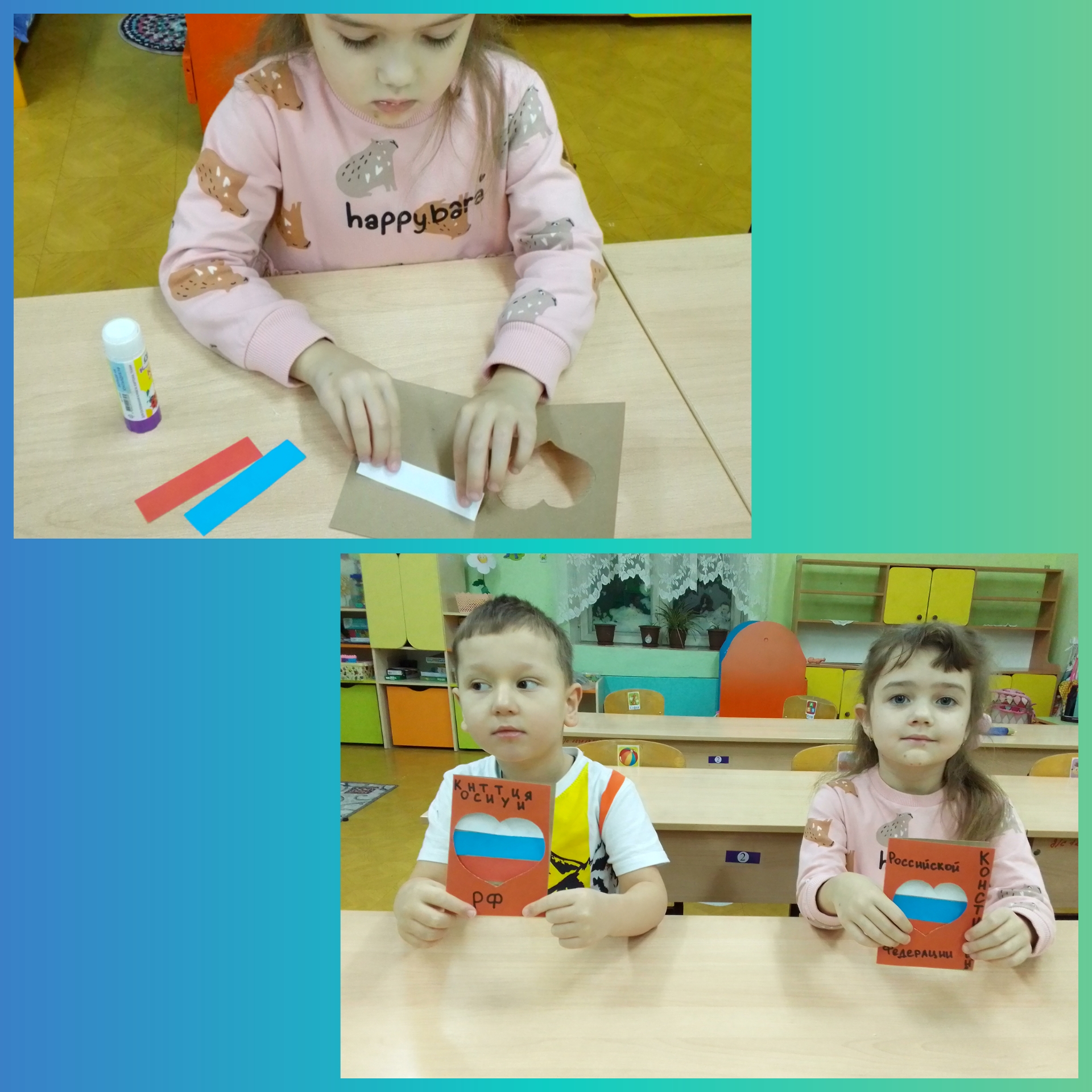 В группе мы с детьми познакомились с понятием "Конституция"- свод законов, где описаны все права и обязанности граждан страны. Получили общие представления о "Конвенции о правах ребенка", которая состоит из статей о правах ребенка и его обязанностях. Хоть мы еще маленькие, но это нам знать очень важно!