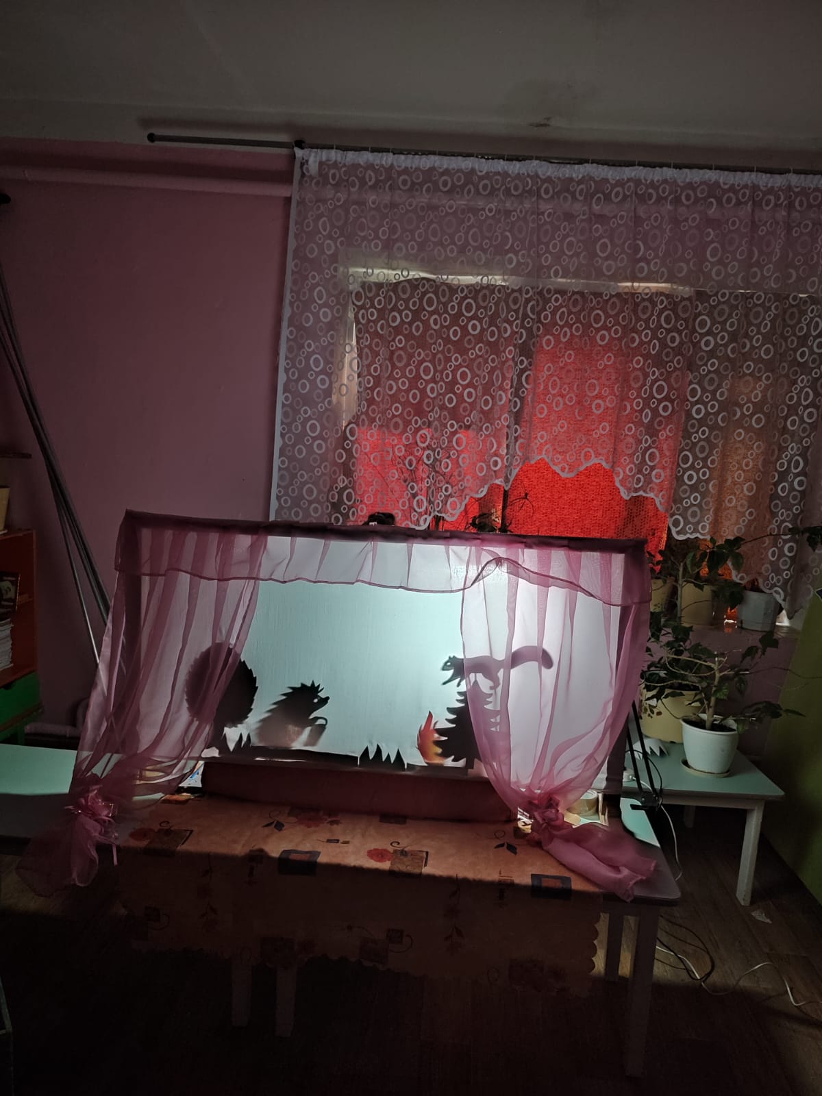 Таинственные вечера....... очень нравится проводить такие вечера за теневым театром. Гаснет свет, включается лампа...... и начинается настоящее волшебство. Практикуем теневой театр с чтением русских народных сказок.