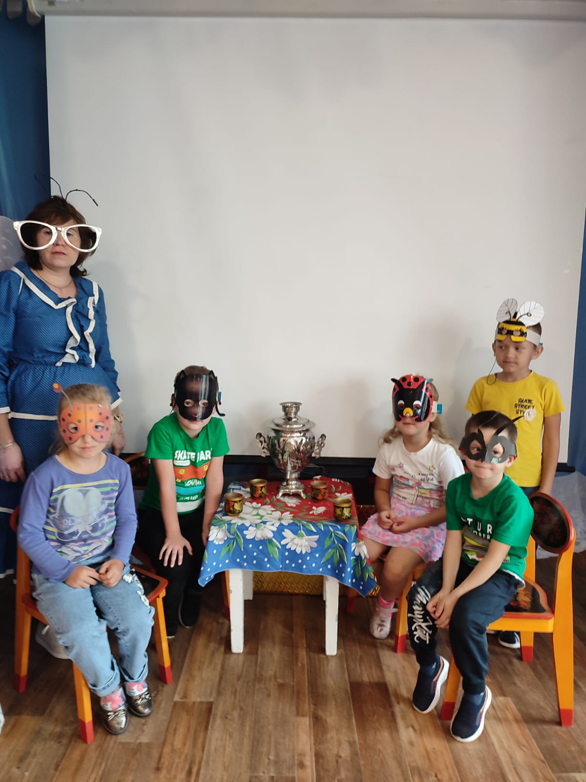 Мы с детьми старшей группы оказались приглашены на именины знаменитой Мухи-Цокотухи! Мы спели для нее каравай, поиграли в игры, приготовили для нее подарок своими руками, я думаю она останется довольна. Так же мы были приглашены на чаепитие в честь праздника.
