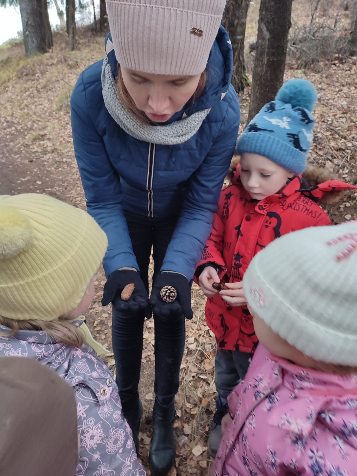 В один из погожих октябрьских деньков мы с детьми старших групп совершили увлекательную, занимательную и познавательную экскурсию в осенний лес и узнали много нового о жизни природы в это время года. Наблюдали за птицами, трогали мох, рассматривали домики муравьев. Обратили внимание на деревья: вечнозеленые... и те, листва с которых облетела раньше. Во время таких прогулок общение с природой воспитывает у ребенка чувство прекрасного.