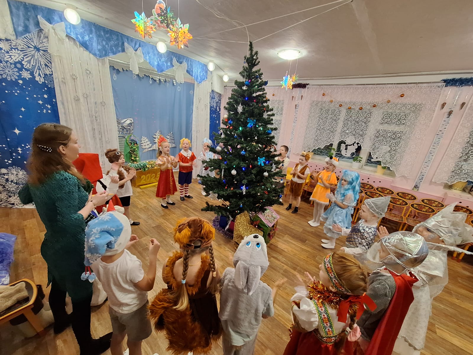 Празднование Нового года- это всегда сказка, волшебство, которое ожидают дети.... Наш праздник прошел в необычной обстановке, мы оказались в знакомой и любимой сказке "МоРоЗкО". Было много героев, много превращений, много танцев, песен и хороводов. Получилось очень здорово, а самое главное наши дети остались в восторге! После... они еще долго обсуждали... надеюсь им запомнится надолго!