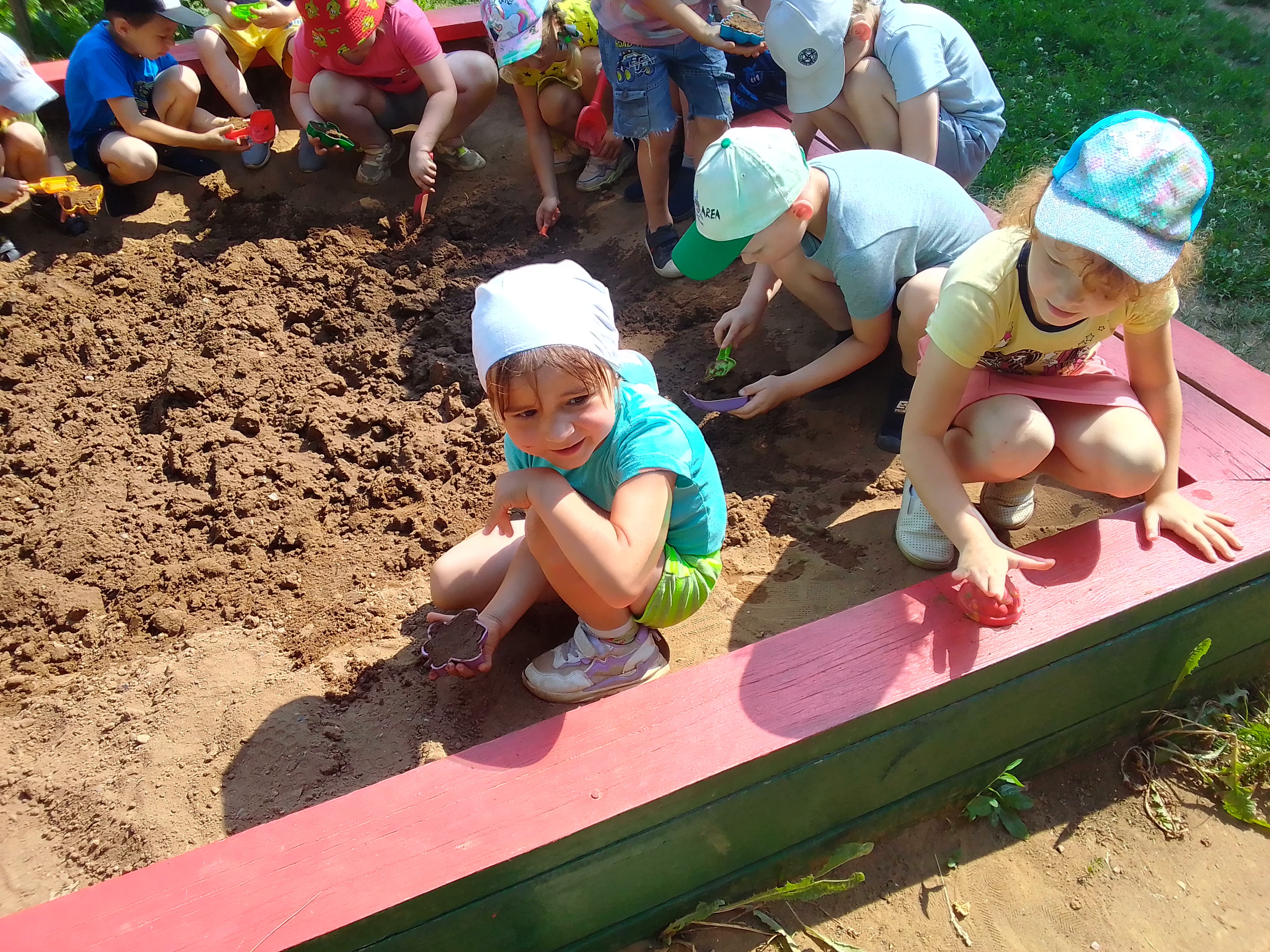 С приходом жаркого летнего солнца, мы как можно больше времени проводим на прогулках, отдых, лепка с песком и игры!