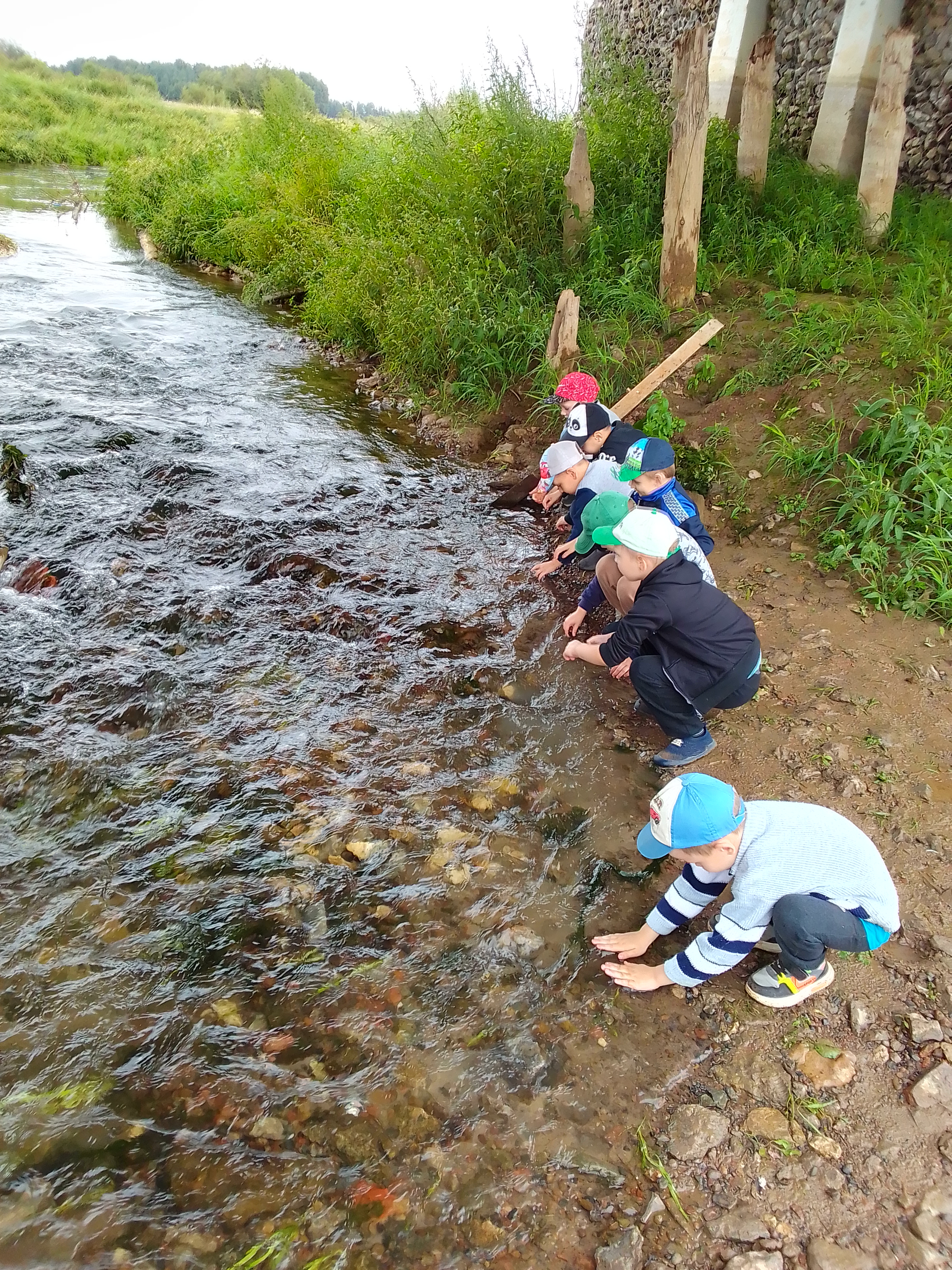 Мы с детьми посетили нашу реку "Суна". Раньше мы наблюдали за бурлящими потоками воды лишь издалека, с моста. Часть воды ушла, и нам удалось поближе разглядеть дно: плавающие водоросли, обточенные гладкие камушки, ракушки. Это было увлекательно.... Множество вопросов и обсуждений... Самое интересное было- наблюдать за эмоциями детей, это не передаваемо! И еще не один раз мы туда возвращались!