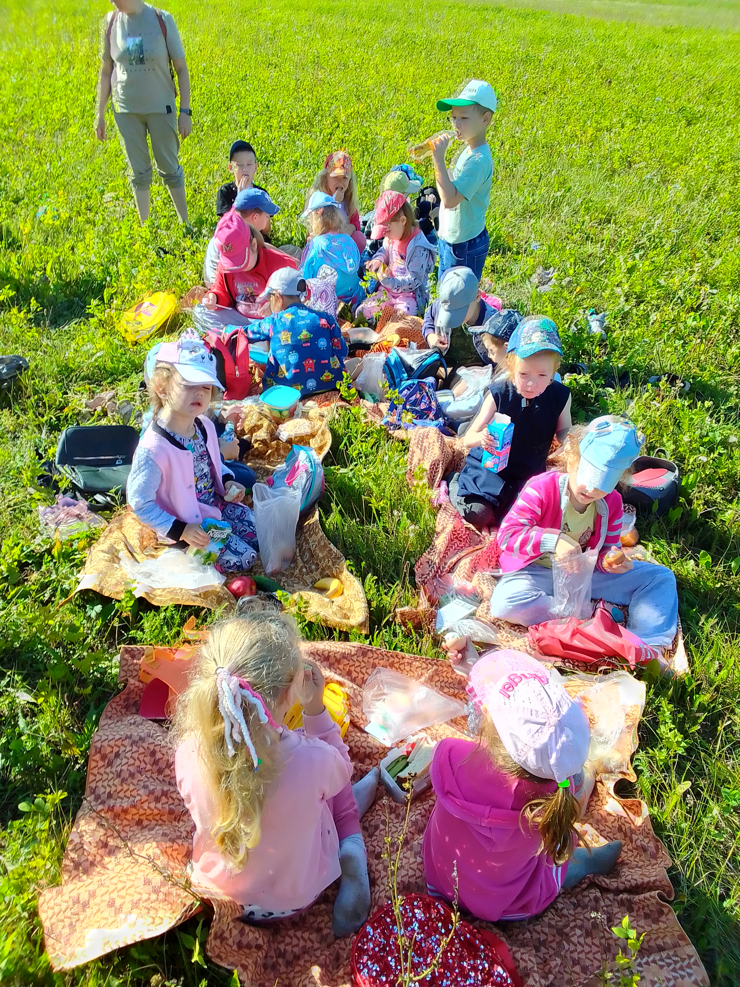 Что-то заскучали мы в детском саду.... было решено отправиться на ПИКНИК! Такая мысль пришла в голову спонтанно, родители полностью поддержали наше решение! С утра с бодрым настроем и полными рюкзаками еды, дети пришли в детский сад! Они задавали лишь один вопрос: "Ну когда же мы уже пойдем...". И наконец, полным составом и в сопровождении родителей, мы выдвинулись в путь. Шли очень долго, но это того стоило.... Завораживающие виды, свежий воздух, игры..... День выдался просто отличный!