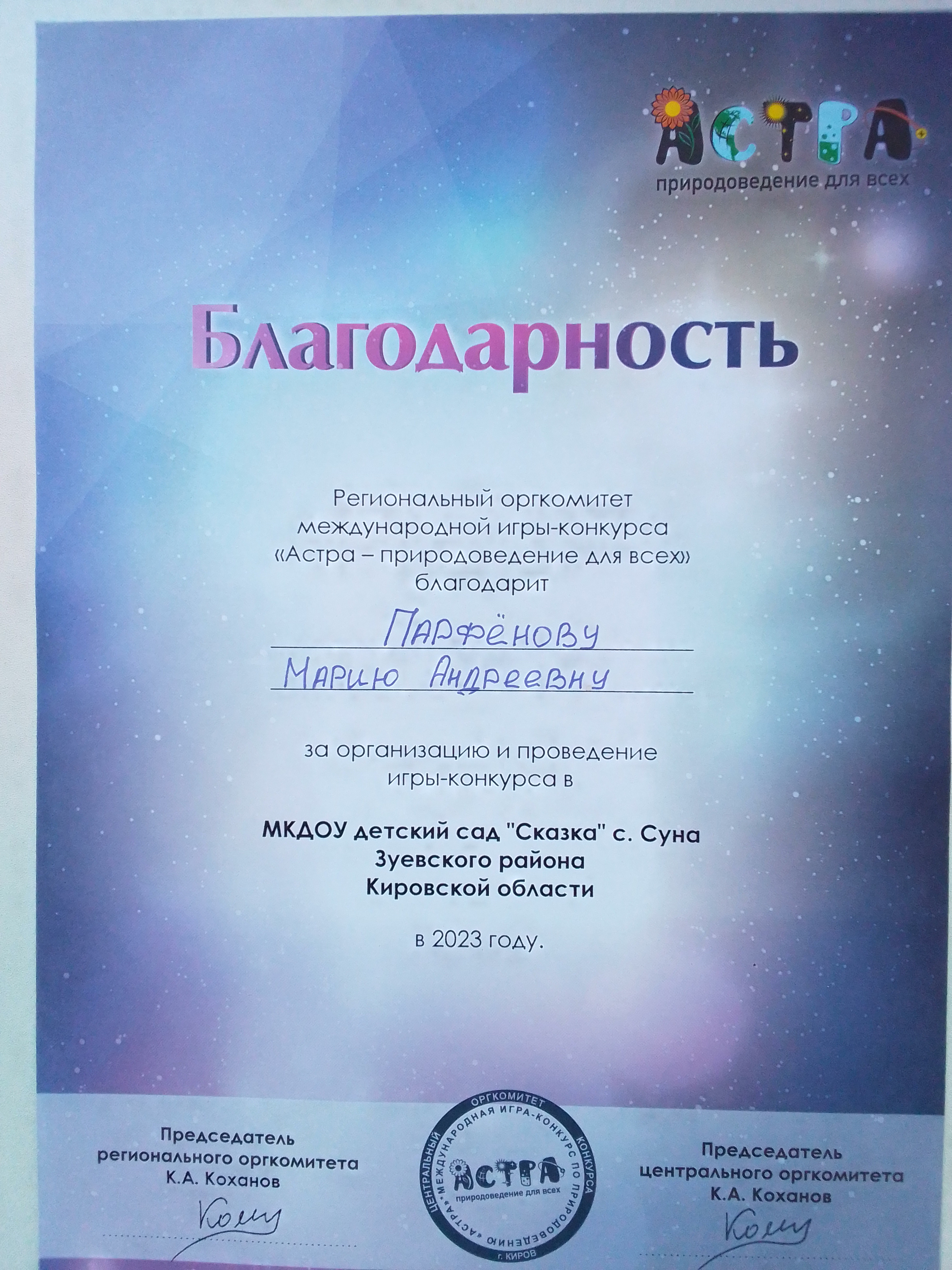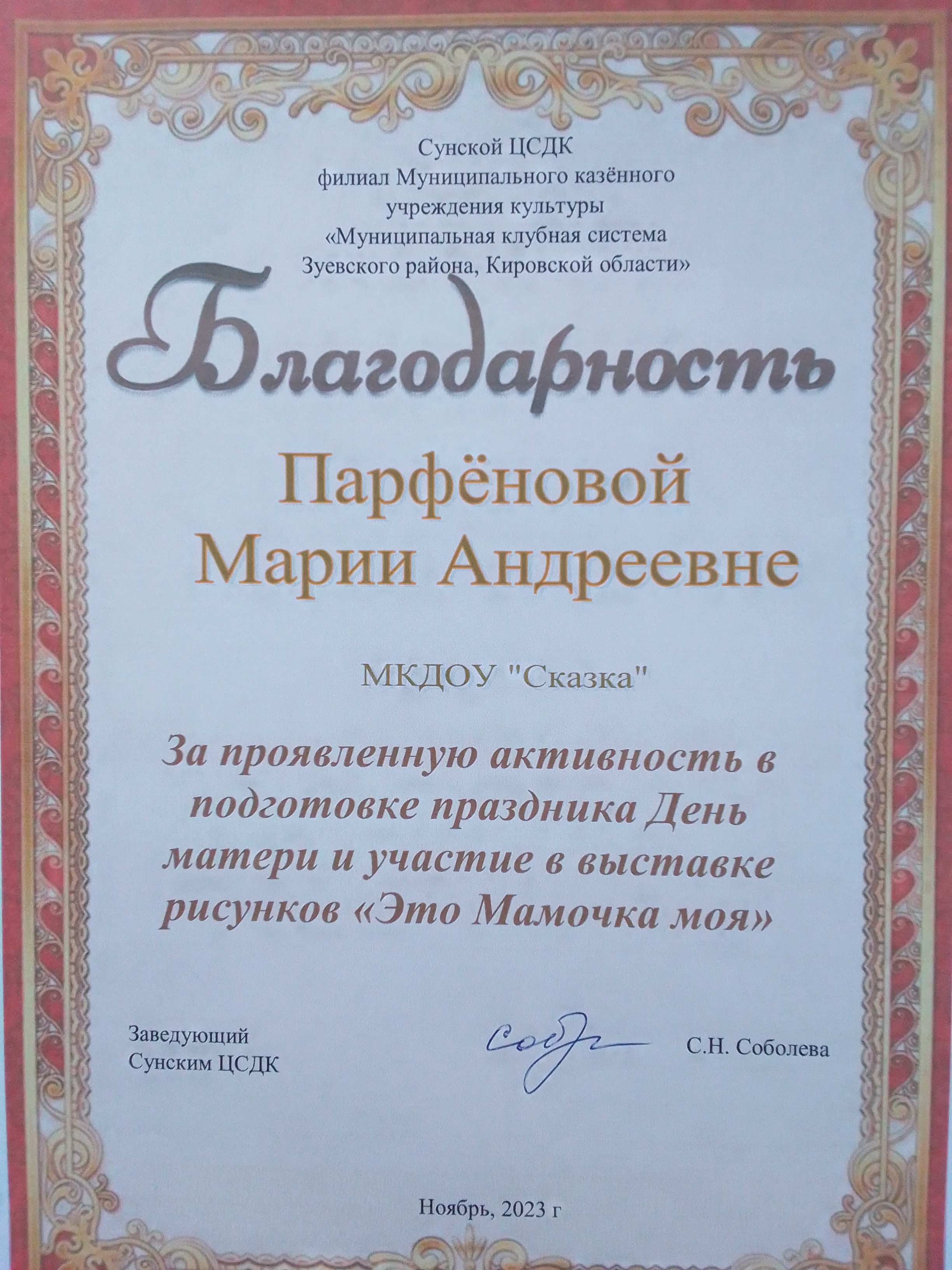 Парфенова Мария Андреевна